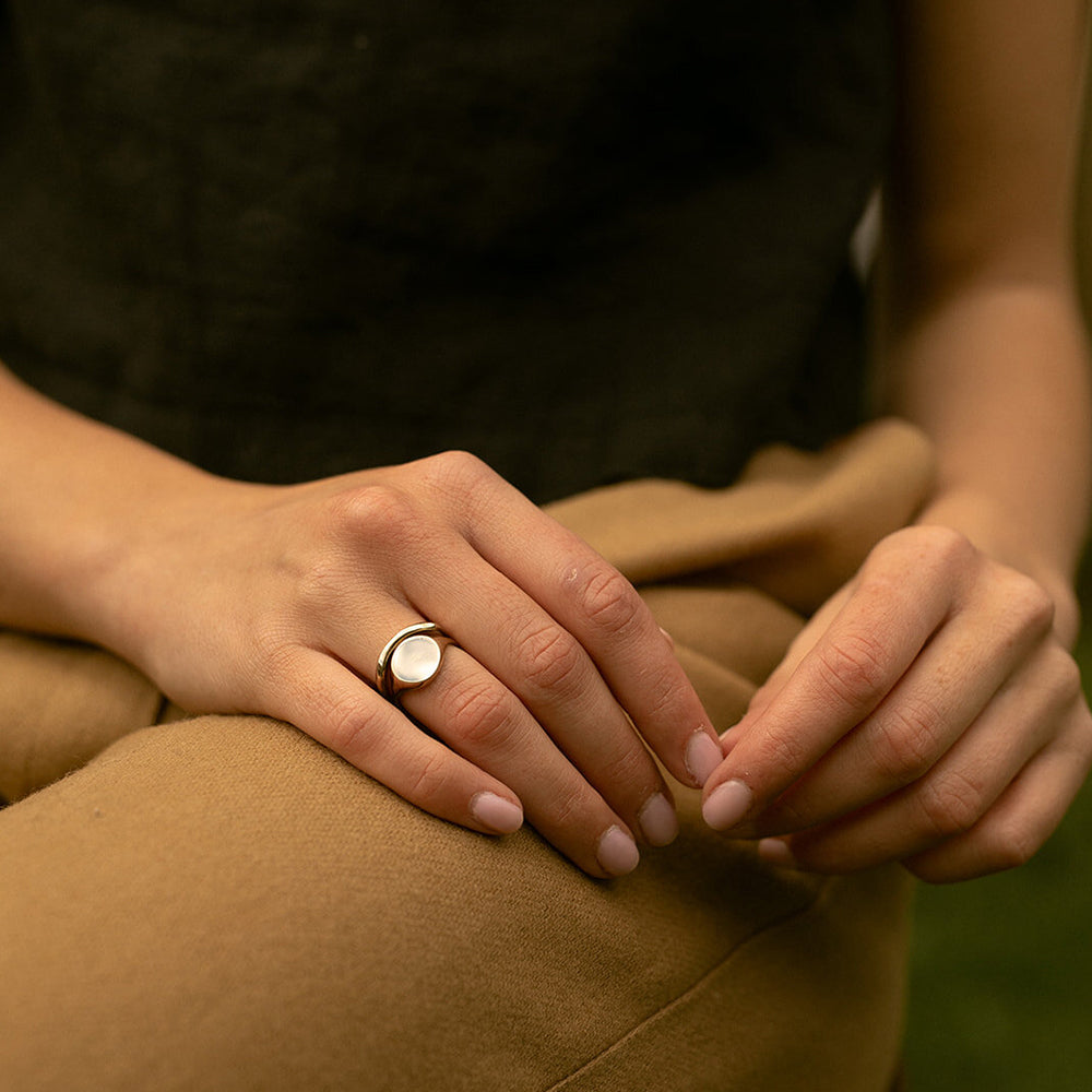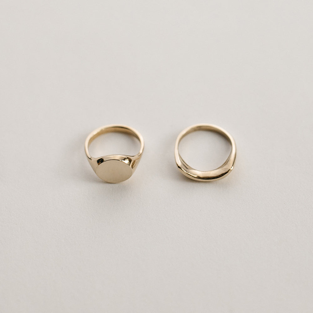 サンライズリングセットは、ハドソン川に昇る日の出からインスピレーションを得ました。2つのリングを一緒につけてもいいし、別々でもOK。その時の気分に合わせてお使いください。