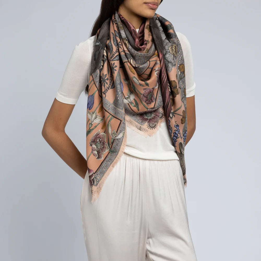 素材は70%ウールと30%シルクで、上品な光沢感と柔らかな風合いが特徴です。大判のサイズ(135cm x 135cm)なので、様々な巻き方が楽しめます。さまざまなシーンで活躍してくれるオナーリングアルゴスのスカーフで、あなたのおしゃれを一段と引き立てましょう。