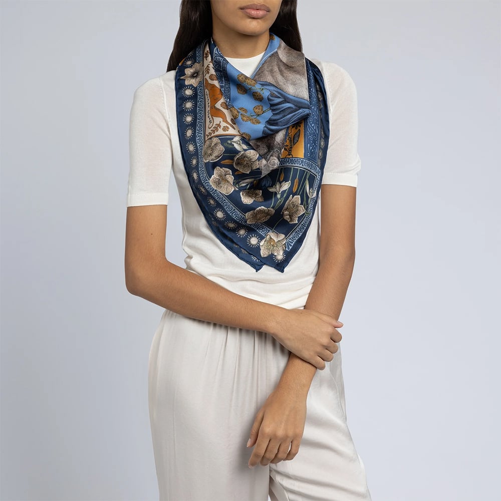 オナーリングアルゴス(マリン/アプリコット)-100%シルク 90cm