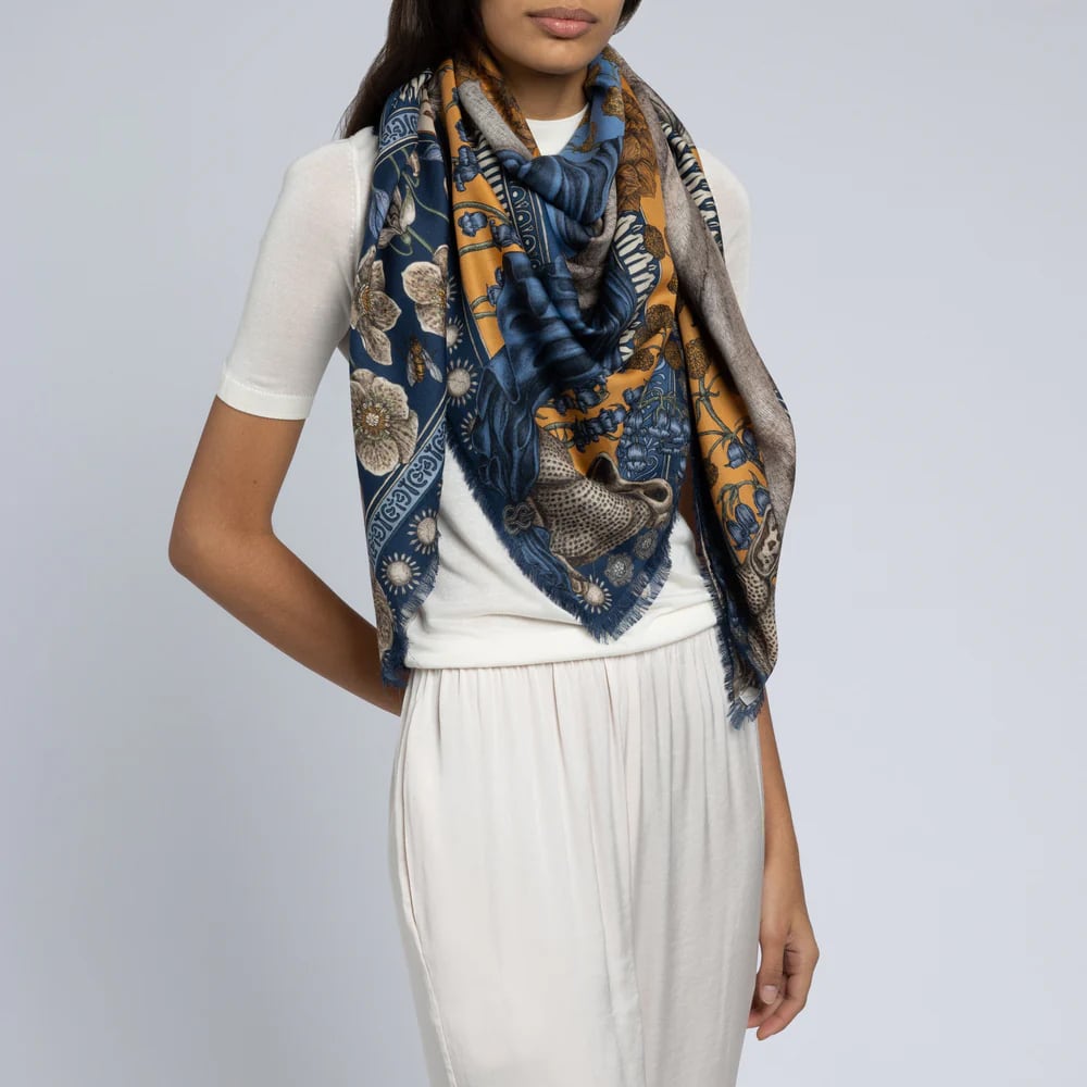 オナーリングアルゴス(マリン/アプリコット) - 70% ウール / 30% シルク - 135cm x 135cm