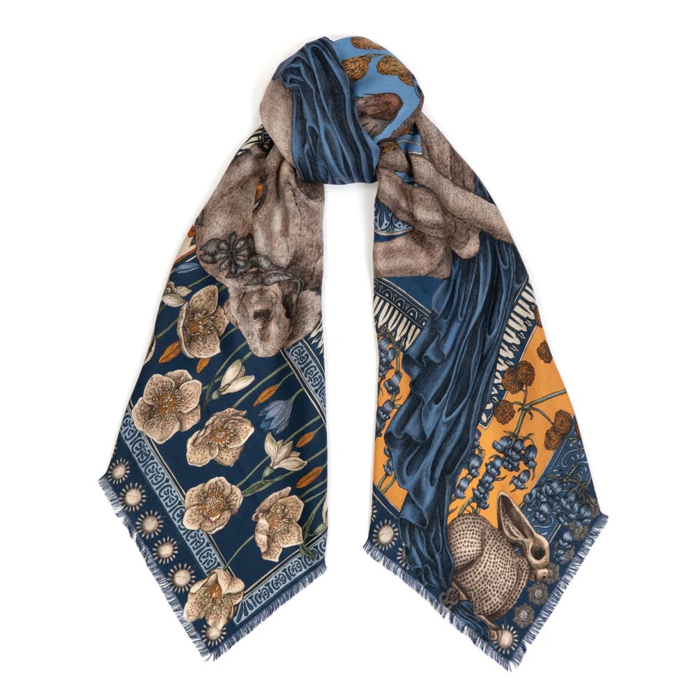 素材は70%ウールと30%シルクで、上品な光沢感と柔らかな風合いが特徴です。大判のサイズ(135cm x 135cm)なので、様々な巻き方が楽しめます。さまざまなシーンで活躍してくれるオナーリングアルゴスのスカーフで、あなたのおしゃれを一段と引き立てましょう。